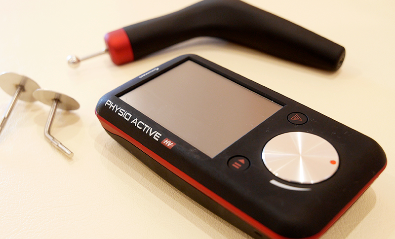 プロスポーツ選手も使う最新の高電圧電気治療器です。痛みやコリが最も強い圧痛点(トリガーポイント)を探し、そこに直接、高電圧電気刺激であるハイボルテージ+超音波を照射し治療します。一般的な低周波や干渉波の電気治療器とは違い、痛めている深層の筋肉に届かせることができ、ぎっくり腰の痛みを早くとりたい、手技では届かない深層筋の炎症を改善したい、という場合に使用します。スポーツでの腰痛などにも効果を発揮します。